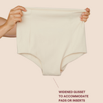 Yes! The widened gusset is designed to accommodate most standard and heavy-flow postpartum pads.